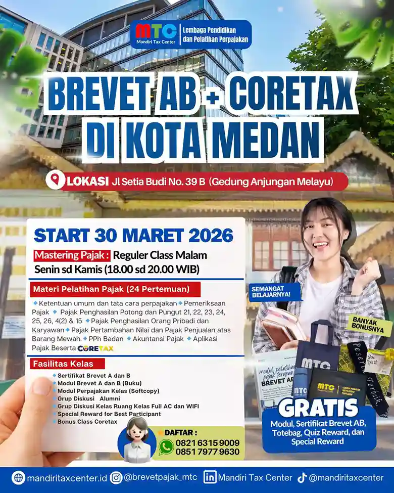 Mandiri Tax Center (MTC) merupakan tempat kursus atau les pajak Brevet AB yang paling terintegrasi di Medan yang memberikan kesempatan kepada seluruh lapisan masyarakat, perusahaan, pengusaha, pelajar untuk memperoleh keahlian yang lebih komprehensif di bidang perpajakan.